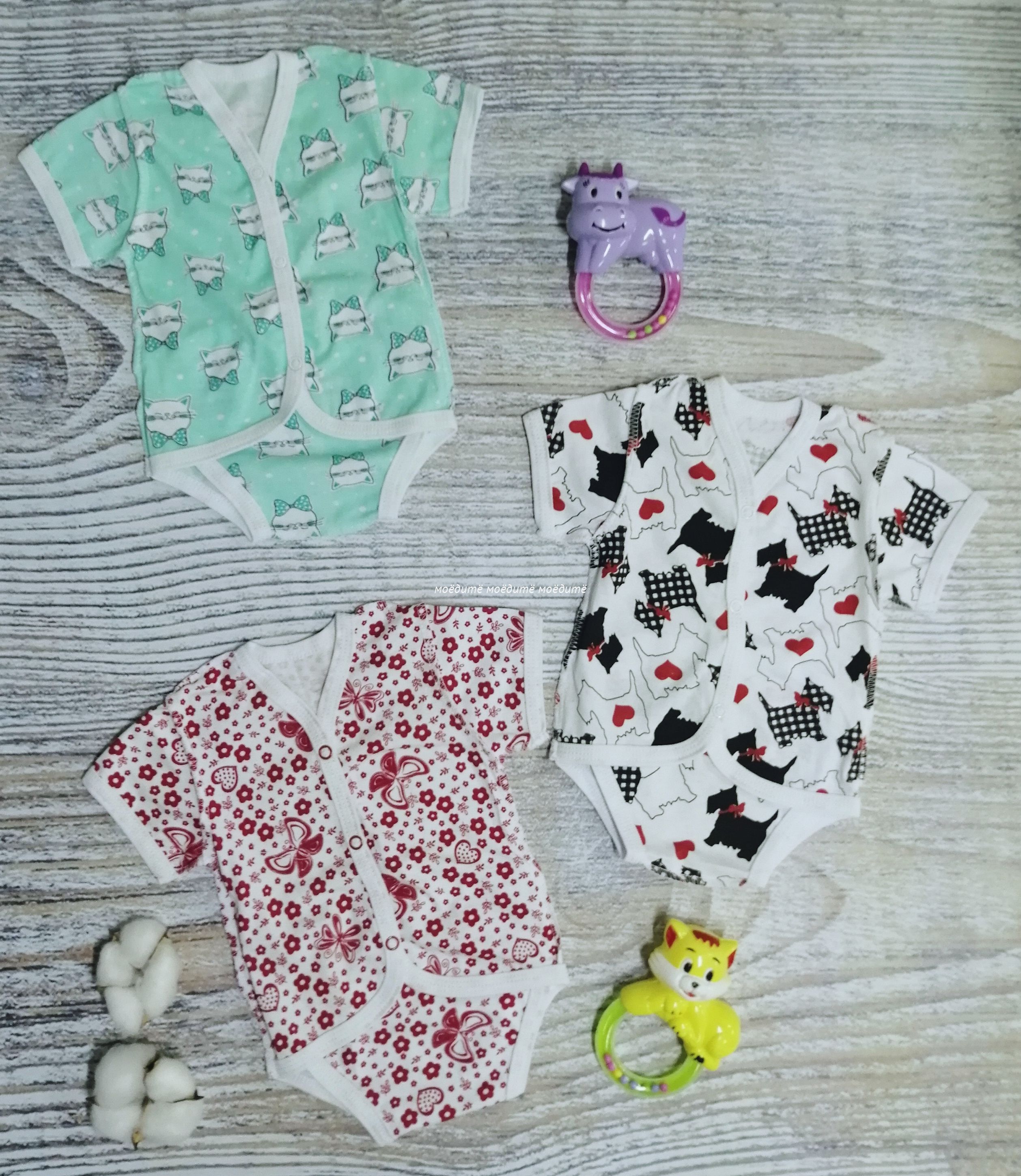 Боди-трансформер с коротким рукавом, спереди на кнопочках.